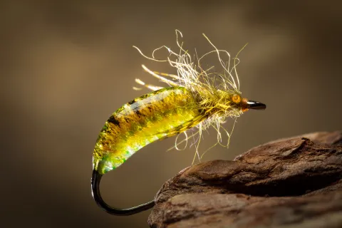 | Thorax | Vicuna olive dubbing and natural pine squirrel dubbing |