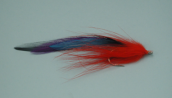Wing: 4-6 Strands Peacock Herl over Violet Bucktail over White Bucktail