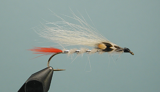 Wing: Two silver badger saddle hackles, reaching slightly past end of tail
