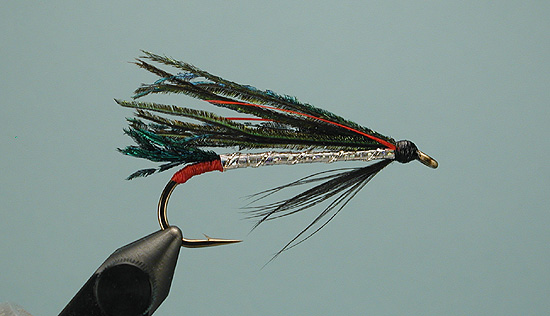 Throat: A few fibers of peacock sword, reaching halfway to hook point and curving toward it.