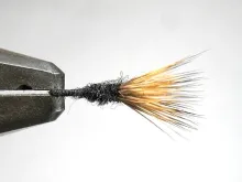 - Wind the thread to the rear of the fly